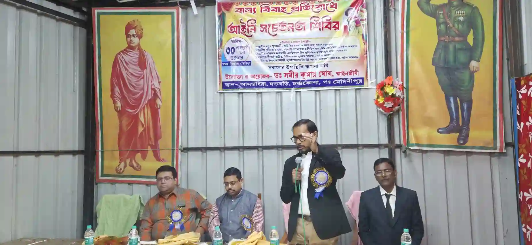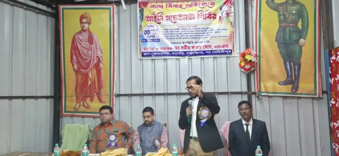 নিজস্ব প্রতিনিধি, চন্দ্রকোনা : আইনের কঠোর শাসন থাকলেও আজও সমাজের রন্ধ্রে রন্ধ্রে রয়ে গিয়েছে বাল্যবিবাহের মতো ঘৃণ্য প্রথা। এই সামাজিক ব্যাধি নির্মূল করতে এবং সাধারণ মানুষকে সচেতন করতে পশ্চিম মেদিনীপুরের চন্দ্রকোনা ২ নম্বর ব্লকে অনুষ্ঠিত হলো একটি বিশেষ বাল্যবিবাহ সচেতনতা শিবির। ‘স্বামী বিবেকানন্দ সেবা সংঘ’-এর পরিচালনায় এবং চন্দ্রকোণার বিশিষ্ট আইনজীবী সমীর কুমার ঘোষের বিশেষ উদ্যোগে এই শিবিরের আয়োজন করা হয়। স্কুল পড়ুয়া ও অভিভাবকদের নিয়ে আয়োজিত এই শিবিরে বাল্যবিবাহের আইনি ও স্বাস্থ্যগত কুফলগুলি বিস্তারিতভাবে তুলে ধরা হয়।