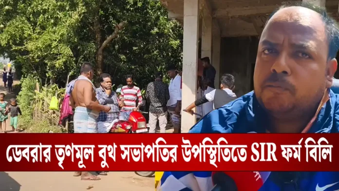 পশ্চিম মেদিনীপুরের ডেবরা ব্লকের হরিদ্রাপাঠ গ্রাম আজ সকালে কার্যত রাজনৈতিক আলোচনার কেন্দ্রবিন্দুতে। অভিযোগ, তৃণমূলের বুথ সভাপতির উপস্থিতিতে SIR ফর্ম বিতরণ করেছেন এক BLO (Booth Level Officer)। ঘটনাটি শনিবার সকালবেলায় ঘটেছে ৩ নম্বর সত্যপুর অঞ্চলের হরিদ্রাপাঠ এলাকায়।