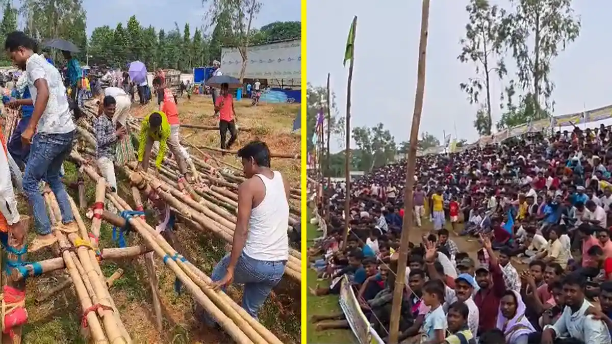 গড়বেতা: পশ্চিম মেদিনীপুর জেলার গড়বেতা তিন নম্বর ব্লকের সাতবাঁকুড়া গ্রাম পঞ্চায়েতের নবকোলা ফুটবল মাঠে বৃহস্পতিবার বিকেলে ঘটে গেল এক চাঞ্চল্যকর ঘটনা। ফুটবল ম্যাচ চলাকালীন মানুষের চাপে ভেঙে পড়ল আজাদিয়া ক্লাবের তৈরি কৃত্রিম গ্যালারি। অল্পের জন্য বড়সড় দুর্ঘটনা থেকে রক্ষা পেলেন শতাধিক দর্শক।