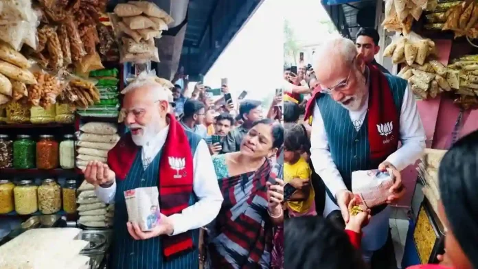 ঝাড়গ্রামে প্রচারের মাঝে রাস্তার দোকানে ঝালমুড়ি খেলেন নরেন্দ্র মোদী