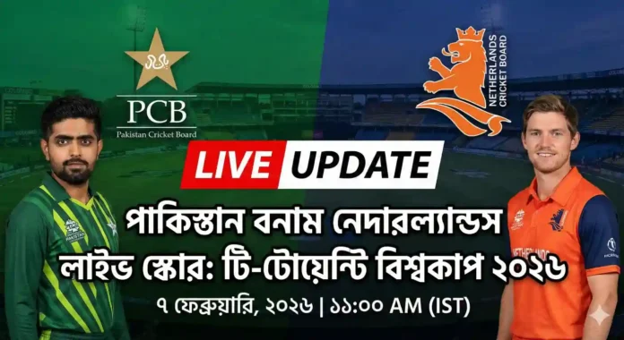 শ্রীলঙ্কার মাটিতে আজ থেকে পর্দা উঠছে টি-টোয়েন্টি বিশ্বকাপ ২০২৬-এর। উদ্বোধনী ম্যাচেই মাঠে নামছে পাকিস্তান ও নেদারল্যান্ডস। কলম্বোর পিচে বাবর-রিজওয়ানদের ব্যাটিং ধামাকা নাকি ডাচ বোলারদের অঘটন—কার পাল্লা ভারী? ভারতীয় সময় সকাল ১১টা থেকে শুরু হওয়া এই হাই-ভোল্টেজ ম্যাচের প্রতি মুহূর্তের লাইভ আপডেট, উইকেট পতন এবং টস রিপোর্ট বাংলায় পেতে চোখ রাখুন আমাদের পেজে।