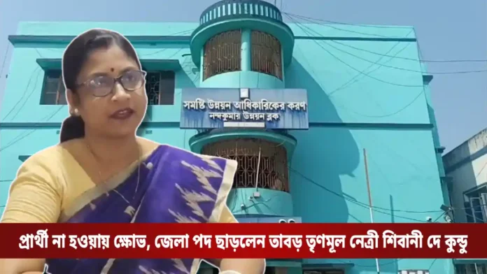 তৃণমূল কংগ্রেসের প্রার্থী তালিকা ঘোষণাকে কেন্দ্র করে পূর্ব মেদিনীপুরে নতুন করে চর্চা শুরু হয়েছে। প্রার্থী না হওয়ায় ক্ষোভ প্রকাশ করে দলীয় পদ এবং প্রশাসনিক পদ থেকে ইস্তফা দিলেন তৃণমূলের প্রভাবশালী নেত্রী শিবানী দে কুন্ডু (Shibani De Kundu)।