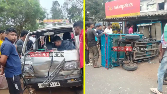 স্থানীয় ও পুলিশ সূত্রে জানা গিয়েছে, এদিন ডেবরা দিক থেকে তীব্র গতিতে আসছিল WB36B1316 নম্বরের একটি মারুতি গাড়ি। প্রত্যক্ষদর্শীদের দাবি, গাড়িটি অত্যন্ত বেপরোয়াভাবে চালানো হচ্ছিল। এরপর জামনার চণ্ডী মন্দিরের কাছে পৌঁছাতেই চালক নিয়ন্ত্রণ হারিয়ে ফেলেন এবং একটি টোটোকে সজোরে ধাক্কা মারেন। ধাক্কার তীব্রতায় টোটোটি মারাত্মকভাবে ক্ষতিগ্রস্ত হয় এবং চালক রাস্তায় ছিটকে পড়েন।
